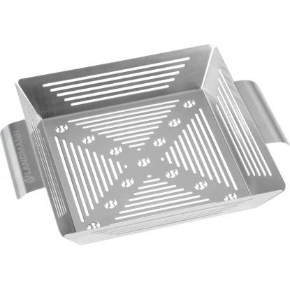Der Landmann Gemüsekorb Selection aus Edelstahl ist optimal zum Grillen von Gemüse und kleineren Speisen auf dem Grill geeignet. Durch den perforierten Boden und den perforierten Seiten erhält der Landmann Gemüsekorb eine besonders intensive Hitze zur Zubereitung der Speisen.