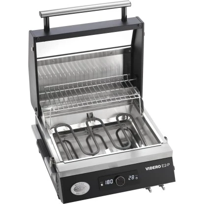 Der Rösle Elektrogrill Videro E2-P erreicht bei einer Leistung von 2.800 Watt eine Grilltemperatur von 120 °C bis 300 °C. Die Bedienung und Temperatureinstellung erfolgt ganz einfach über einen Drehregler. Die Brennkammer, der zweiteilige Grillrost, das Warmhalterost und die seitlich herausnehmbare Fettauffangwanne sind aus Edelstahl und somit einfach zu reinigen.