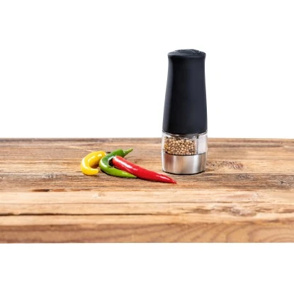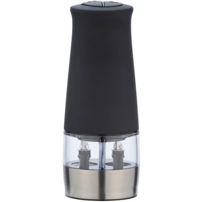 Die Idee des Mahlens hat sich über Jahrhunderte entwickelt und die Technik hat sich stets verfeinert. Mit der elektrischen Pfeffer- und Salzmühle von Wenko würzen Sie ganz bequem mit nur einer Hand kinderleicht auf Knopfdruck. Die schwarze Oberfläche des Gehäuses ist mit einer griffigen Soft-Touch Beschichtung versehen. Durch die Ausstattung mit einer LED-Leuchte ist ein punktgenaues Würzen auch bei stimmungsvollem Kerzenschein möglich. Die elektrische Gewürzmühle ist Batteriebetrieben (6 x 1,5 V AA) – Batterien werden nicht mitgeliefert.